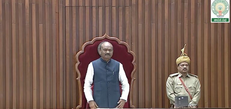 అమరావతి నిర్మాణ పనులు 2104-19 మధ్య కాలంలో మొదలయ్యాయి. కానీ 2019లో దురదృష్టవశాత్తూ ప్రగతి రథానికి అడ్డంకులు ఎదురయ్యాయి. 2019-24 మధ్య కాలంలో కనివినీ ఎరుగని రీతిలో వైపరీత్యాలతో కూడిన పాలన సాగింది. అని సభాపతి ఆవేదన వ్యక్తం చేశారు.