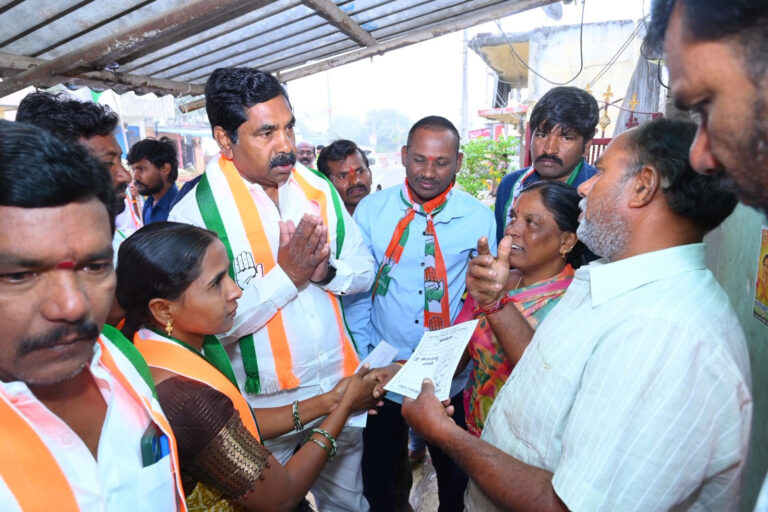వర్ధన్నపేట, ఆంధ్రప్రభ : వర్ధన్నపేట మున్సిపాలిటీ పరిధిలోని 12వ వార్డులో కాంగ్రెస్ పార్టీ అభ్యర్థి తిరుపెల్లి వాణి–కుమారస్వామి ని భారీ మెజారిటీతో గెలిపించాలని కోరుతూ. చివరి రోజు వినూత్న రీతిలో పార్టీ శ్రేణులతో కలిసి ఇంటింటి ప్రచారం కార్యక్రమాన్ని నిర్వహించారు. ఈ కార్యక్రమంలో ముఖ్యఅతిథిగా వర్ధన్నపేట ఎమ్మెల్యే కేఆర్ నాగరాజు పాల్గొని ప్రజలతో మమేకమై, కాంగ్రెస్ పార్టీ అభ్యర్థినీ భారీ మెజారిటీతో గెలిపించాలని ప్రజలను కోరారు.ఈ సందర్భంగా కాంగ్రెస్ పార్టీ ప్రభుత్వం అమలు చేస్తున్న పలు సంక్షేమ పథకాలను ప్రజలకు వివరించి, వాటి ద్వారా లభిస్తున్న ప్రయోజనాలను తెలియజేస్తూ ఓట్లను అభ్యర్థించారు. ప్రచార కార్యక్రమానికి ప్రజల నుంచి విశేష స్పందన లభించిందని, రానున్న ఎన్నికల్లో కాంగ్రెస్ పార్టీ ఘన విజయం సాధించడం ఖాయమని నేతలు విశ్వాసం వ్యక్తం చేశారు.ఈ ప్రచార కార్యక్రమంలో స్థానిక పార్టీ శ్రేణులు, నాయకులు కార్యకర్తలు, ఇంచార్జీలు తదితరులు పాల్గొన్నారు.