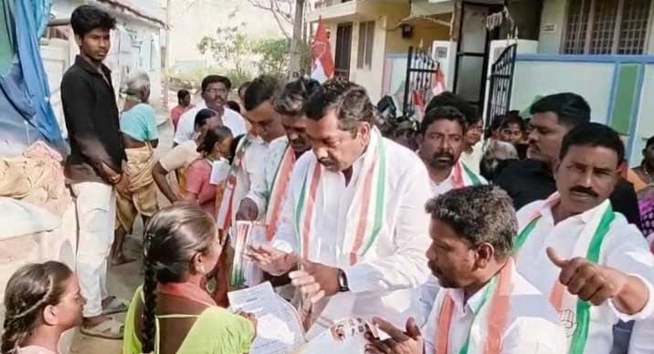 అలాగే 1వ వార్డు పరిధిలో త్రాగునీరు, డ్రైనేజీ, రహదారులు, పారిశుధ్యం వంటి మౌలిక సదుపాయాల సమస్యలను త్వరలోనే పరిష్కరిస్తామని హామీ ఇచ్చారు. ప్రజల సమస్యలను తమ దృష్టికి తీసుకువచ్చిన వెంటనే సంబంధిత అధికారులతో మాట్లాడి పరిష్కారం చూపిస్తామని తెలిపారు.ఈ కార్యక్రమంలో కాంగ్రెస్ పార్టీ నాయకులు, కార్యకర్తలు పాల్గొని ఇంటింటి ప్రచారాన్ని విజయవంతం చేశారు. చివరగా కాంగ్రెస్ పార్టీ గుర్తైన చేతి గుర్తుకు ఓటు వేసి 1వ వార్డు అభ్యర్థి బెజ్జం పాపరావు ని భారీ మెజార్టీతో గెలిపించాలని ఎమ్మెల్యే కేఆర్ నాగరాజు ఓటర్లను కోరారు..ఈ కార్యక్రమంలో నియోజకవర్గ అధికార ప్రతినిధి నిమ్మాని శేఖర్ రావు, ఇంచార్జీలు, స్థానిక నాయకులు కార్యకర్తలు స్థానిక ప్రజలు తదితరులు పాల్గొన్నారు.