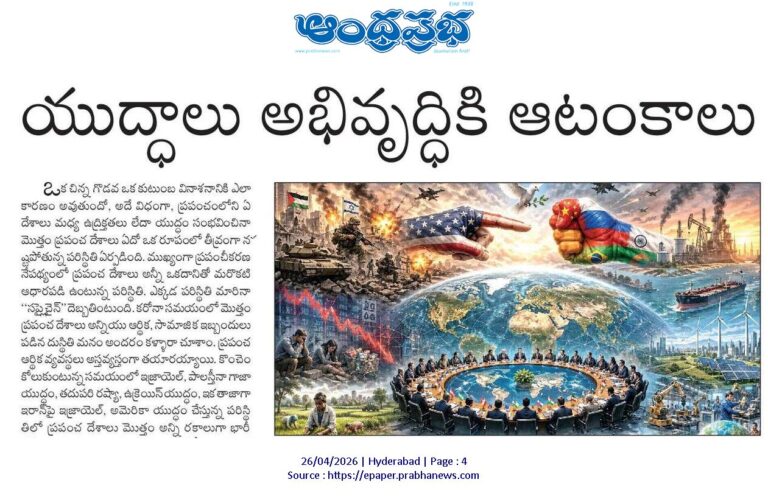 26thaprilsplstory | ఒక చిన్న గొడవ ఒక కుటుంబ వినాశనానికి ఎలా కారణమవుతుందో, అదే విధంగా ప్రపంచంలోని ఏ దేశాల మధ్య ఉద్రిక్తతలు లేదా యుద్ధం సంభవించినా మొత్తం ప్రపంచ దేశాలు ఏదో ఒక రూపంలో తీవ్రంగా నష్టపోతున్న పరిస్థితి ఏర్పడింది. ముఖ్యంగా ప్రపంచీకరణ నేపథ్యంలో ప్రపంచ దేశాలు అన్నీ ఒకదానితో మరొకటి ఆధారపడి ఉంటున్నాయి. ఎక్కడ పరిస్థితి మారినా ‘సప్లై చైన్’ దెబ్బతింటుంది. కరోనా సమయంలో మొత్తం ప్రపంచ దేశాలు అన్నీ ఆర్థిక, సామాజిక ఇబ్బందులు ఎదుర్కొన్న దుస్థితిని మనం కళ్లారా చూశాం. ప్రపంచ ఆర్థిక వ్యవస్థలు అస్తవ్యస్తంగా తయారయ్యాయి.