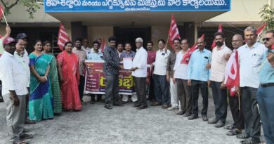 29 కార్మిక చట్టాలను రద్దు చేసి వాటి స్థానంలో నాలుగు కోడ్ లు తెచ్చి ఉద్యోగ భద్రత లేకుండా చేస్తే ఊరుకోం : ట్రేడ్ యూనియన్ నాయకులు రైతు సంఘం నాయకులు