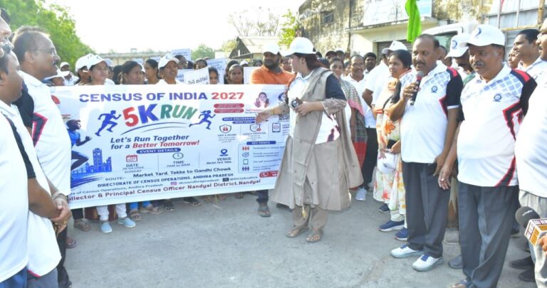 నంద్యాల బ్యూరో, ఆంధ్రప్రభ : “సెన్సస్ ప్రతి పౌరుని బాధ్యత” అనే సందేశాన్ని ప్రజల్లో విస్తృతంగా చేరవేయడమే సెన్సస్ 5కే రన్ కార్యక్రమ ముఖ్య ఉద్దేశ్యమని జిల్లా కలెక్టర్ జి రాజకుమారి పేర్కొన్నారు. సెన్సస్ ఔట్రీచ్ కార్యక్రమంలో భాగంగా ఆదివారం నంద్యాల లో టెక్కే మార్కెట్ యార్డ్ వద్ద 5 కిలోమీటర్ల రన్ను కలెక్టర్ ప్రారంభించారు. టెక్కే మార్కెట్ యార్డ్ నుండి గాంధీ చౌక్ వరకు సాగిన ఈ రన్లో జిల్లా అధికారులు, యువత, విద్యార్థులు, మహిళలు, వివిధ వర్గాల ప్రజలు పెద్ద ఎత్తున పాల్గొని ఉత్సాహంగా పరుగులు తీశారు.