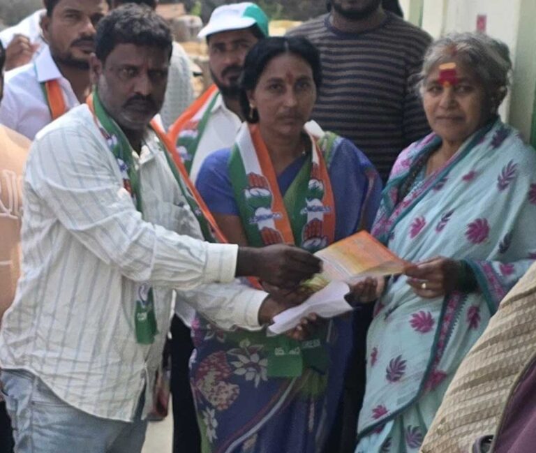 భీమ్గల్ టౌన్, ఫిబ్రవరి 4 (ఆంధ్రప్రభ ): చేతి గుర్తుకు ఓటు వేసి భారీ మెజారిటీ అందించాలని 5 వ వార్డు కాంగ్రెస్ పార్టీ బలపరిచిన అభ్యర్థి కర్నె గంగామణి ( గంగయ్య ) కోరారు. బుధవారం ఐదో వార్డు లో వారు ఎన్నికల ప్రచారం నిర్వహించారు. ఈ సందర్బంగా ఇంటింటికి తిరుగుతూ ఓట్లు అభ్యర్తించారు. కాంగ్రెస్ పార్టీ తోనే అభివృద్ధి సాధ్యం అన్నారు. ఒక్కసారి ప్రజా సేవ చేసేందుకు అవకాశం ఇవ్వాలని కోరారు. అధికార పార్టీ కి ఓటు వేయడం ద్వారా వార్డు అభివృద్ధి సాధ్యం అవుతుందన్నారు. ఐదో వార్డు సభ్యులకు అందుబాటులో ఉండే తనను ఆదరించి, చేతి గుర్తుకు ఓటు వేయాలని కోరారు. వార్డు లో మురికి కాలువలు, సీసీ రోడ్స్, మురికి కాలువల నిర్మాణం, వీధి దీపాల ఏర్పాటు తదితర మౌలిక వసతులు చేస్తానని పేర్కొన్నారు. వార్డు ను బాల్కొండ నియోజకవర్గం కాంగ్రెస్ పార్టీ ఇంచార్జి ముత్యాల సునిల్ కుమార్, పీసీసీ అధ్యక్షులు బొమ్మ మహేష్ కుమార్ గౌడ్, మానాల మోహన్ రెడ్డి, ఈరవత్రి అనిల్ సహకారం తో వార్డు ను ఆదర్శం చేస్తానని తెలిపారు. ఈ కార్యక్రమం లో కాంగ్రెస్ శ్రేణులు, మహిళలు, యువకులు పాల్గొన్నారు.
