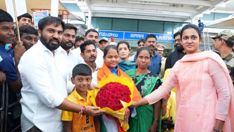 ఆంధ్రప్రభ విజయవాడ : కొలంబోలో ఇటీవల జరిగిన తొలి మహిళా ప్రపంచ బ్లైండ్ క్రికెట్ కప్లో భారత్ విజయం సాధించడంలో కీలకపాత్ర పోషించిన మన తెలుగు క్రీడాకారిణి శ్రీ పి. కరుణ కుమారి ని సోమవారం గన్నవరం విమానాశ్రయంలో రాష్ట్ర క్రీడా ప్రాధికార సంస్థ చైర్మన్ అనిమిని రవినాయుడు, ఎండీ శ్రీమతి భరణి పుష్పగుచ్ఛాలతో స్వాగతించి దుశ్యాలువాతో సత్కరించారు.