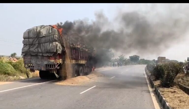 కాలి బూడిదైన వడ్ల లారీ
