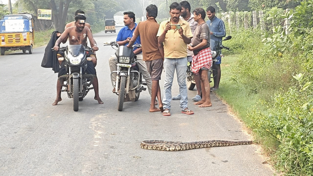 భారీ కొండచిలువ(python) ను చూసిన వారంతా భయబ్రాంతులకు గురయ్యారు. స్థానిక యువకులు భయంతో ఆ కొండచిలువపై దాడికి దిగారు..అంతా కలిసి కర్రలతో కొట్టి చంపారు. తరచూ కొండచిలువలు వస్తున్నాయని స్థానికులు ఆందోళన వ్యక్తం చేశారు.