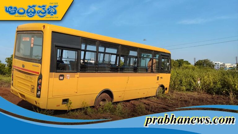 బురదలో దిగబడిన స్కూల్ బస్సు