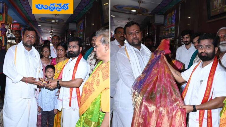 (ఆంధ్రప్రభ, ఎన్టీఆర్ బ్యూరో) : విజయవాడ ఇంద్రకీలాద్రిపై వెలసిన శ్రీ దుర్గా మల్లేశ్వరి స్వామి వార్ల ఆలయంలో కొలువై ఉన్న కనకదుర్గమ్మ అమ్మవారికి తెలంగాణలోని సిరిసిల్లకు చెందిన నల్ల విజయ్ కుమార్ అనే చేనేత కార్మికుడు బుధవారం అగ్గిపెట్టెలో పట్టుచీర సమర్పించారు.
