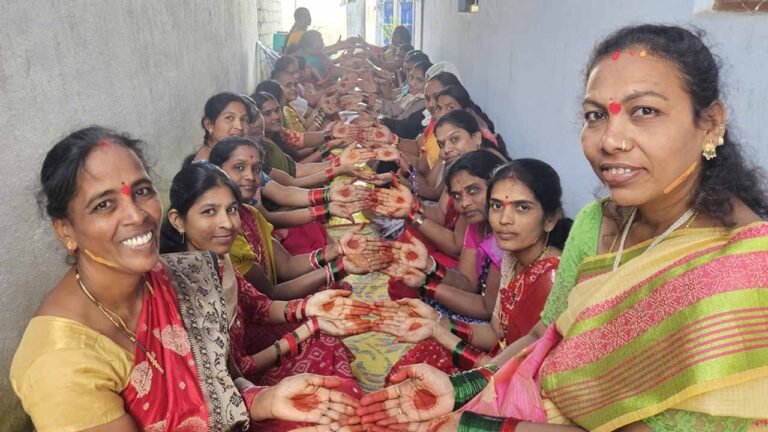 Adilabad | దండేపల్లి, ఆంధ్రప్రభ : దండేపల్లి మండలంలోని తాళ్ళపేటలోని జై హనుమాన్ గ్రామ సంఘం ఆధ్వర్యంలో ఈ రోజు ప్రెండ్షిప్ గాజుల సవ్వడి కార్యక్రమాన్ని ఘనంగా నిర్వహించారు. ఈ సందర్భంగా ఐకెపి ఎపిఎం(IKP APM) తోట లక్ష్మి మాట్లాడుతూ.మహిళలు చేతులకు గోరింటాకు పెట్టుకుని పసుపు కుంకుమలతో పూజలు నిర్వహించుకొని గాజుల సవ్వడి పండగ చేసుకోవడంతో పరిచయం పెరుగుతుందని, మహిళలు ప్రతి ఒక్కరు ఈ గాజుల పండగ ను జరుపుకోవాలని అన్నారు.