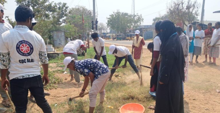 Aleru, ఆంధ్రప్రభ : యాదాద్రి భువనగిరి జిల్లా ఆలేరు మండలం శారాజిపేట గ్రామంలో జరుగుతున్న ప్రభుత్వ డిగ్రీ కళాశాల ఆలేరు ఎన్ఎస్ఎస్ శిబిరంలో భాగంగా విద్యార్థులు స్వచ్ఛభారత్ కార్యక్రమంలో పాల్గొన్నారు. ప్రాథమిక పాఠశాల, హై స్కూల్ ప్రాంగణాలలో గడ్డిని, అనవసరపు మొక్కలను తొలగించి ఆ పాఠశాలల విద్యార్థులు నడిచేందుకు వీలుగా శుభ్రం చేశారు. ఈ కార్యక్రమంలో ఎన్ఎస్ఎస్ ప్రోగ్రాం ఆఫీసర్ డాక్టర్ నల్లబోలు ముత్యాలు, వాలంటీర్లు పాల్గొన్నారు. ఈ గ్రామంలో వాలంటీర్లు ర్యాలీని కూడా నిర్వహించారు.