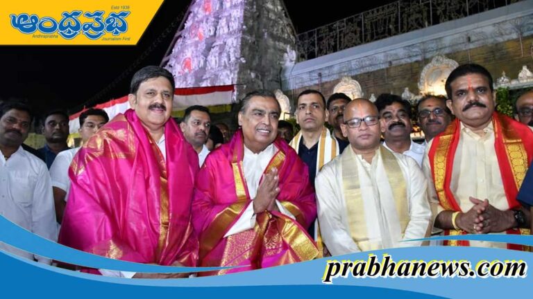 తిరుమల (ఆంధ్రప్రభ ప్రతినిధి) : తిరుమల శ్రీవారిని రిలయన్స్ అధినేత ముకేష్ అంబానీ దర్శించుకున్నారు. ఆదివారం వేకువజామున స్వామి వారి మేల్కొలుపు సేవ సుప్రభాత సేవలలో దర్శించుకుని మొక్కులు చెల్లించుకున్నారు. దర్శన అనంతరం ఆలయ రంగనాయకుల మండపంలో వేద పండితులు వేద ఆశీర్వాదం అందించగా, ఆలయ అధికారులు పట్టు వస్త్రంతో సత్కరించి స్వామి వారి తీర్థ ప్రసాదాలు అందజేశారు. కార్యక్రమంలో అడిషనల్ ఈఓ వెంకయ్యచౌదరీ,ఆలయ డిప్యూటీ ఈఓ లోకనాథం,రిసెప్షన్ డిప్యూటీ ఈఓ భాస్కర్,ఇతర అధికారులు పాల్గొన్నారు.