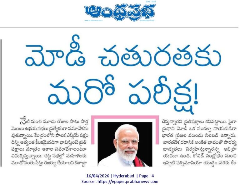 Andhra Prabha SPL Story | తన ప్రజలు ఎక్కడున్నారో అక్కడి నుంచి.. ఎక్కడ లేరో అక్కడికి సమున్నతంగా తీసుకెళ్లగలిగిన వాడే అసలైన నాయకుడు. ఇది సుప్రసిద్ధమైన హెన్రీ కిసింజర్ కొటేషన్. బీజేపీ జాతీయ నాయకులు దీన్ని ప్రధానమంత్రి నరేంద్ర మోడీకి చాలా ఇష్టంగా అనువర్తింప చేస్తూ కీర్తిస్తుంటారు. ఇంకా చెప్పాలంటే ఒక్క తమ నాయకుడికి మాత్రమే ఇది వర్తిస్తుందని కూడా చెబుతారు. దీన్నేమీ అతిశయోక్తిగా అనుకోనక్కర్లేదు. ప్రధాని మోడీ 2014 మే 26న మొదటిసారి భారతదేశ ప్రధానమంత్రిగా పదవీ ప్రమాణ స్వీకారం చేసిన నాటినుంచి ఇన్నేళ్ల కాలంలో ఆయన చేసిన నిర్ణయాలు ఈ విషయాన్ని ధృవీకరిస్తున్నాయి. అందులో కొన్ని సాహసోపేతమైనవి మరికొన్ని దుస్సాహసమైనవి ఉన్నాయి. అది వేరే విషయం. కాని డెబ్బయ్ తొమ్మిదేళ్ల స్వతంత్ర భారతదేశంలో జరగని అనేకానేక నిర్ణయాలు ఆయన మానస పుత్రికలుగా ముద్రపడ్డాయి. అలాంటి సందర్భమే మళ్లీ ఇప్పుడు వచ్చింది.