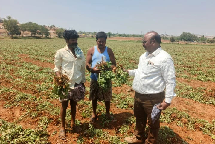 ఈ సందర్భంగా ఆయన మాట్లాడుతూ ప్రస్తుతం ఉరవకొండ సబ్ డివిజన్ లో ఈ రబీ సీజన్. లో 2025-26 వేరుశెనగ పంట సాధారణ విస్తీర్ణం 1, 915 హెక్టార్లకు గాను 1, 382 హెక్టర్లు ( 72 శాతం ) పంట సాగులో ఉందన్నారు. కొన్ని గ్రామాల్లో రైతులు వేరుశనగ పంట కోతలు ప్రారంభించారని, పంట కోత సమయంలో మరియు వేరుశెనగ కాయలు నిలువ చేయుటలో సరియైన యాజమాన్య పద్ధతులను పాటించాలన్నారు. మొక్కల ఆకులు, కొమ్మలు పసుపు వర్ణం గా మారి, కాయ డొల్ల లోపలి భాగం నలుపుగా మారినప్పుడు పంటను కోయాలన్నారు. ప్రతి మొక్కలో 80 శాతం ముదిరి ఉండాలి, కోత సమయంలో నేలలో తగినంత తేమ ఉండాలన్నారు. భూమి నుండి మొక్కలను తీయటానికి ట్రాక్టర్ తో నడిచే బ్లేడు, గుంటక లేక వేరుశనగ డిగ్గర్ వాడుకోవాలి. చెట్ల నుండి కాయలను వేరు చేయటానికి పచ్చి లేక ఎండు కాయలను వేరు చేయు యంత్రాలు ఉపయోగించాలన్నారు.