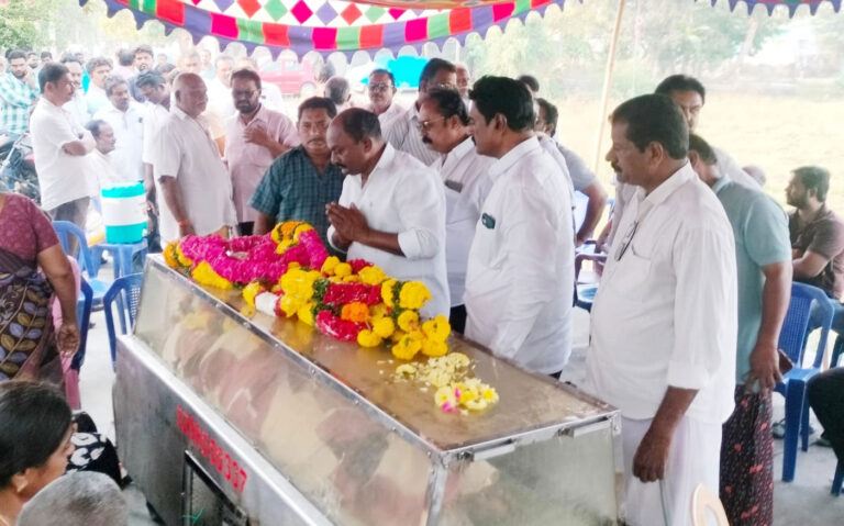 చల్లపల్లి, ఆంధ్రప్రభ : చల్లపల్లి పంచాయతీలోని రాధానగర్ కు చెందిన ప్రముఖులు నెర్సు యజ్ఞనారాయణ మృతదేహానికి ప్రముఖ పారిశ్రామికవేత్త, కూటమి నాయకులు విక్కుర్తి వెంకట శ్రీనివాసరావు నివాళులు అర్పించారు. యజ్ఞనారాయణ శుక్రవారం ఆకస్మికంగా మరణించారు. విషయం తెలుసుకున్న విక్కుర్తి శ్రీనివాస్ శనివారం ఉదయం రాధానగర్ లోని గృహంలో యజ్ఞ నారాయణ మృతదేహానికి పూలమాలలతో శ్రద్ధాంజలి ఘటించారు. కుటుంబ సభ్యులకు శ్రీనివాస్ ప్రగాఢ సానుభూతిని తెలియజేశారు. యజ్ఞనారాయణ మృతిపట్ల విక్కుర్తి విచార వ్యక్తం చేశారు. తెలుగుదేశం పార్టీ అవనిగడ్డ మండల అధ్యక్షులు యాసం చిట్టిబాబు, విక్కుర్తి రాంబాబు, న్యాయవాది విక్కుర్తి రామకృష్ణ, పులిగడ్డ చంద్ర, కస్తూరి విజయ్ కుమార్,భూపతి నాంచారయ్య,బర్మా శ్రీను,రేపల్లె ముసలయ్య, రేపల్లె ఈశ్వరరావు,బర్మా బుజ్జి తదితరులు యజ్ఞనారాయణకు నివాళులు అర్పించిన వారిలో ఉన్నారు.