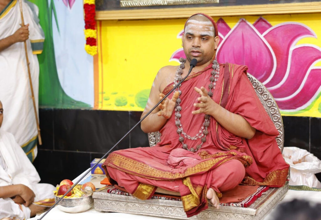 అనంతరం వారు శ్రీ స్వామిఅమ్మవార్లను దర్శించుకుని పూజాదికాలను నిర్వహించారు. తరువాత అమ్మవారి ఆలయ ప్రాంగణంలోని ఆశీర్వచన మండపంలో జగద్గురు శ్రీశ్రీశ్రీ విధుశేఖర భారతీ మహాస్వామి వారి గౌరవార్థం వేదగోష్ఠి నిర్వహించబడిందన్నారు .తరువాత గురువందన కార్యక్రమం జరిపించబడింది. అనంతరం మహాస్వామివారు అనుగ్రహ భాషణం చేశారు. ఈ సందర్భంగా వారు సనాతన ధర్మం యొక్క విశిష్టత, శ్రీశైలక్షేత్ర మహిమా విశేషాలు, శివానందలహరి – సౌందర్యలహరి స్తోత్రాల విశేషాలను వివరించారు. చివరగా మహాస్వామివారు భక్తులందరికీ ఆశీర్వచనాలను అందజేశారు. కార్యక్రమంలో పలువురు పాల్గొన్నారు.