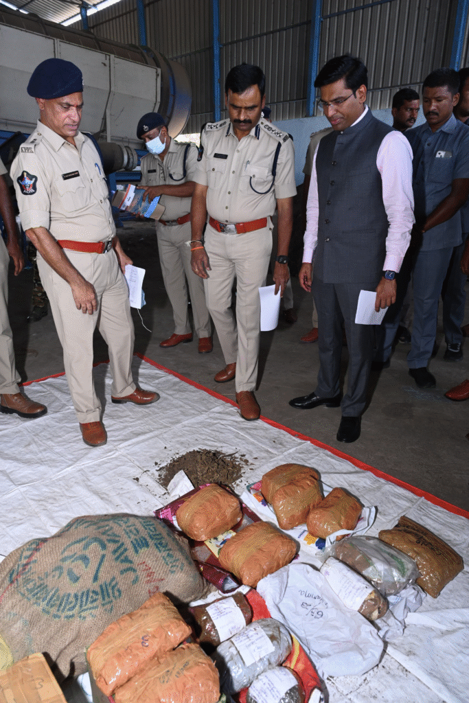 కలెక్టర్, ఎస్పి ల నేతృత్వంలో 4 వేల కిలోల గంజాయి ధ్వంసం