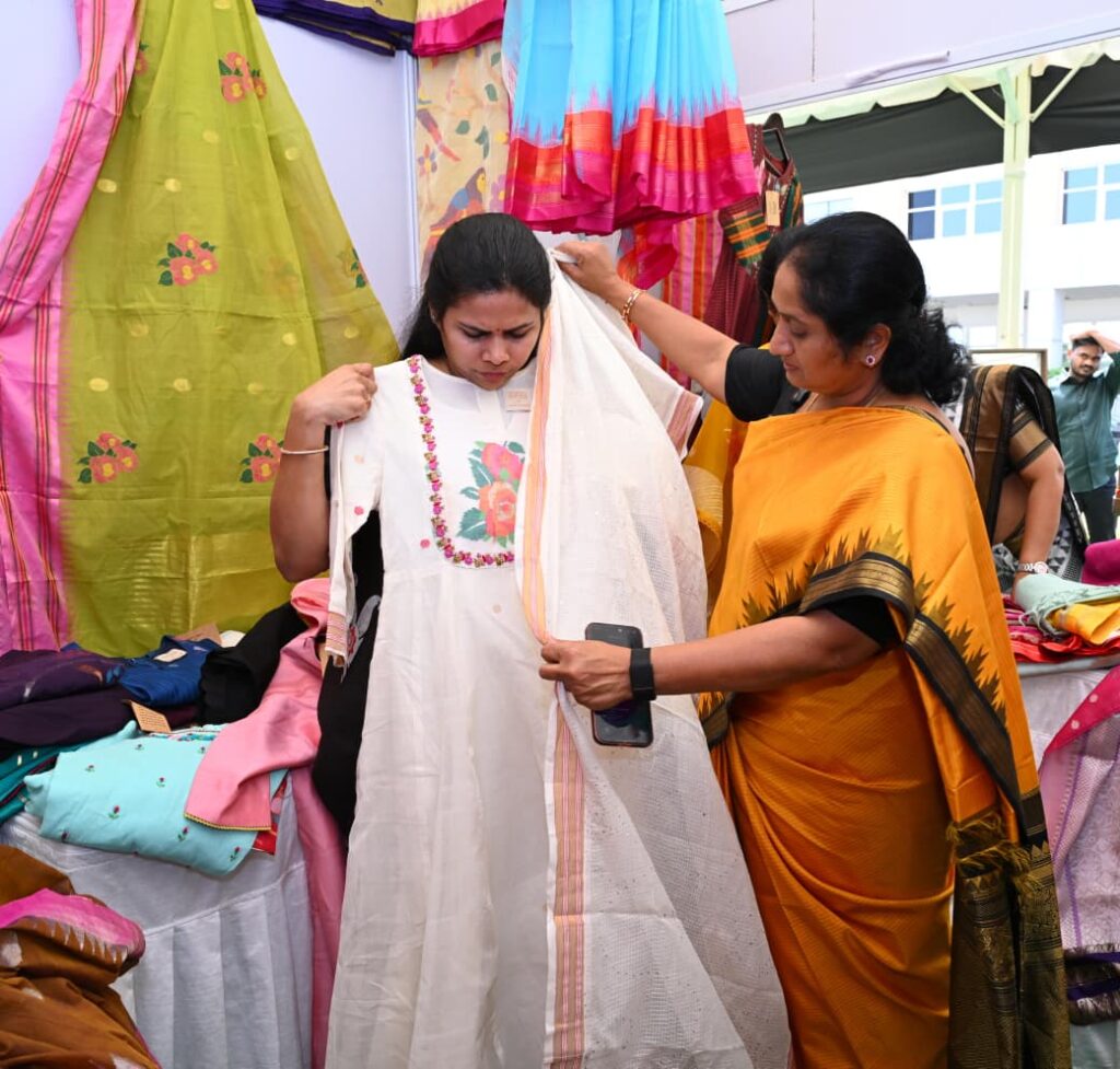 రాష్ట్రంలో అన్ని జిల్లాలకు చెందిన ప్రఖ్యాతగాంచిన చేనేత ఉత్పత్తులను ఆ స్టాళ్లలో అమ్మకానికి పెట్టారు. ఆనాటి నుంచి రోజూ మంత్రులు, ఎమ్మెల్యేలు, ఎమ్మెల్సీలు, విప్ లు ఆ స్టాళ్లను సందర్శిస్తున్నారు. రాష్ట్ర చేనేత, జౌళి శాఖ మంత్రి ఎస్.సవిత …నిత్యం స్టాళ్లను సందర్శిస్తూ.. తోటి మంత్రులు, ఎమ్మెల్యేలతో చేనేత ఉత్పత్తులు కొనుగోలు చేసేలా కృషి చేస్తున్నారు. బుధవారం కూడా మంత్రులు వంగలపూడి అనిత, గుమ్మడి సంధ్యారాణి, ఎమ్మెల్యేలు భూమా అఖిలప్రియ, ప్రశాంతిరెడ్డి సహా పలువురు ఎమ్మెల్యేలు చేనేత స్టాళ్లను సందర్శించి వస్త్రాలను కొనుగోలు చేశారు. ఈ సందర్భంగా మంత్రి సవిత… చేనేత రెడీ మెడ్ దుస్తులు సహా ప్రపంచ ప్రఖ్యాతి గాంచిన పొందూరు షర్ట్ లు, పంచెలు, కండువాలు, మాధవవరం, వెంకటగిరి, ధర్మవరం, రాజమండ్రి, ఉప్పాడ, బందరు, మానపల్లి పట్టు, సాధారణ చీరలను వారికి చూపించి కొనుగోలు చేయించారు.
