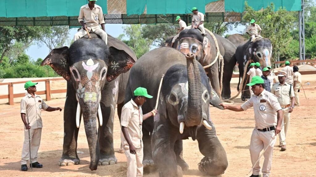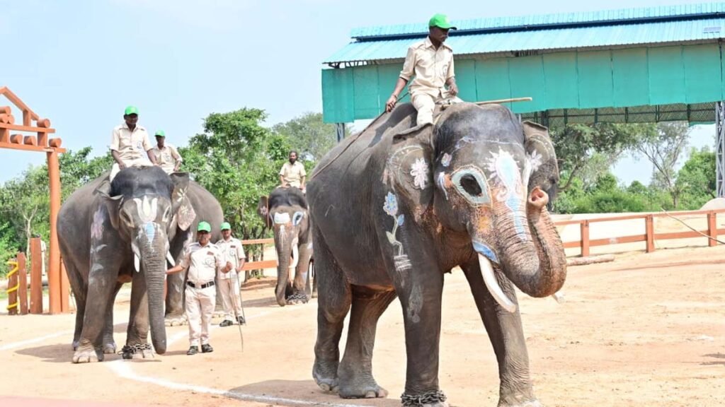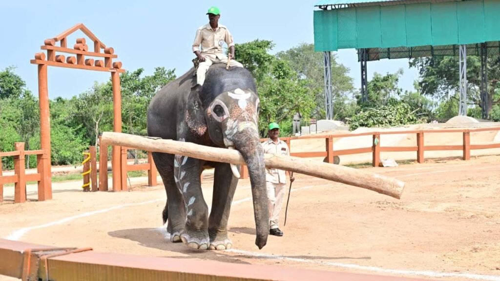 శిబిరంలో కుంకీ ఏనుగులతో ప్రత్యేక పరేడ్ నిర్వహించగా, గజరాజులు పవన్ కళ్యాణ్‌కు సెల్యూట్ చేశాయి. పవన్ కూడా వాటికి అభివాదం చేశారు. శిక్షణ పొందిన ఏనుగులు అడవిలో దారి తప్పిన మదపుటేనుగును ఎలా బంధిస్తాయో ప్రదర్శించాయి. ముందు నుంచి ఒక ఏనుగు మదపుటేనుగును లాక్కొనగా, వెనక నుంచి మరో రెండు ఏనుగులు తోసి సహాయం చేయడం ప్రదర్శనలో భాగమైంది. పవన్ కళ్యాణ్ ఆ దృశ్యాలను ఆసక్తిగా వీక్షించారు. ఏనుగులకు బెల్లం అందించి వాటితో స్నేహపూర్వకంగా మెలిగారు.