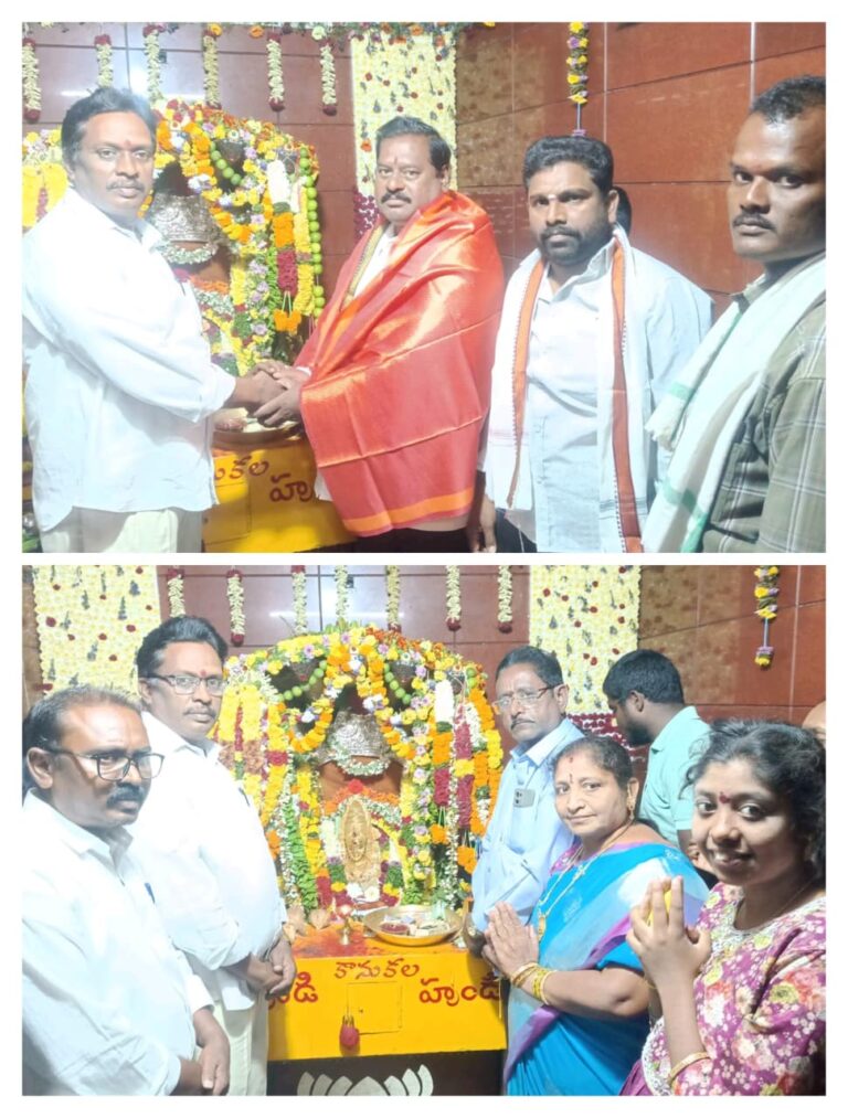AP, పెడన, ఆంధ్రప్రభ : పెడన పట్టణంలో కొలివుదీరిన శ్రీ పైడమ్మ అమ్మవారిని ఇటీవలే అసిస్టెంట్ గవర్నమెంట్ ప్లీడర్ గా నియమితులైన దాసరి శివ నాగరాజు, పైడమ్మ అమ్మవారి ఆలయానికి ఈవోగా పని చేసి ఇటీవలే బదిలీ పై వెళ్లిన తిక్కిశెట్టి వీర వెంకట మోహన్ రావు కుటుంబ సమేతంగా దర్శించుకున్నారు. ఆలయ ఈవో జీ. వెంకట కృష్ణారావు, ఆలయ వ్యవస్థాపక ధర్మకర్త దాసు వాయునందనరావు వారికి ఘన స్వాగతం పలికారు. అమ్మవారిని దర్శించుకుని ప్రత్యేక పూజలు చేశారు. ఆలయ అర్చకులు ఆలయం విశిష్టతలను తెలియజేశారు.
