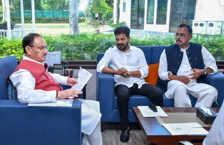 డీల్లీ పర్యటనలో కేంద్ర మంత్రులు జేపీ నడ్డా, పీయూష్ గోయల్లతో తెలంగాణ సీఎం రేవంత్ రెడ్డి నేడు భేటీ అయ్యారు. తెలంగాణ రాష్ట్రంకు కేటాయించిన ఎరువులు సకాలంలో సరఫరా చేయాలని కేంద్రమంత్రి జేపీ నడ్డాను కోరారు.