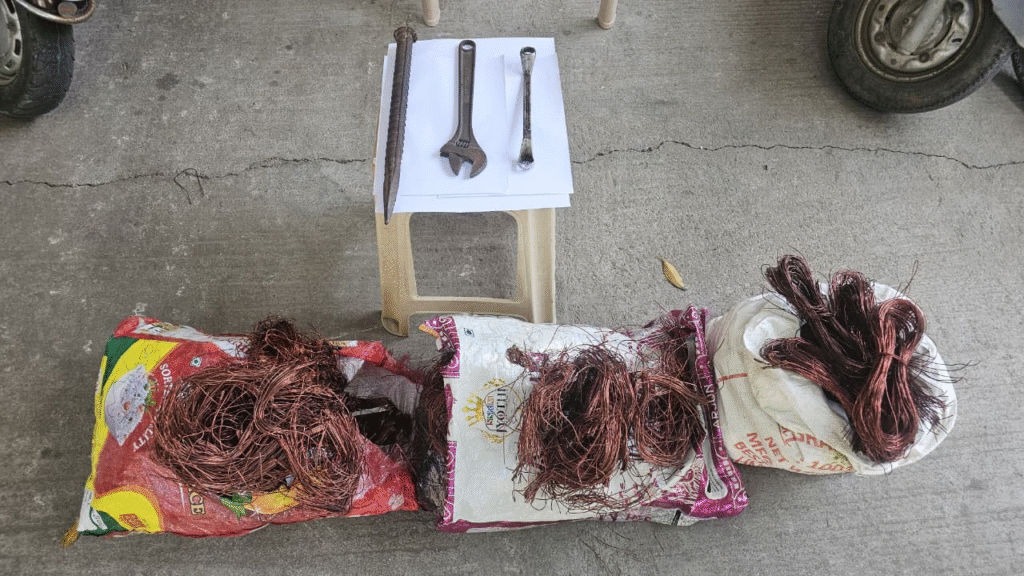 దర్యాప్తులో లభించిన సమాచారం మేరకు జనవరి 30 సాయంత్రం టానా కూడలి వద్ద ముగ్గురు నిందితులను పోలీసులు అదుపులోకి తీసుకున్నారు. వారి వద్ద నుండి 61 కిలోల కాపర్ వైరు (విలువ రూ.85,400), కటింగ్ పరికరాలు మరియు మూడు ద్విచక్ర వాహనాలను స్వాధీనం చేసుకున్నారు. అనంతరం నిందితులను న్యాయస్థానానికి హాజరు పరిచి రిమాండ్కు తరలించారు. అరెస్టయిన నిందితులు పులిచర్ల బాలకృష్ణ రెడ్డి (42), పులిచర్ల చంద్రబాబు (39), పి. గణేష్ (35)గా గుర్తించారు.