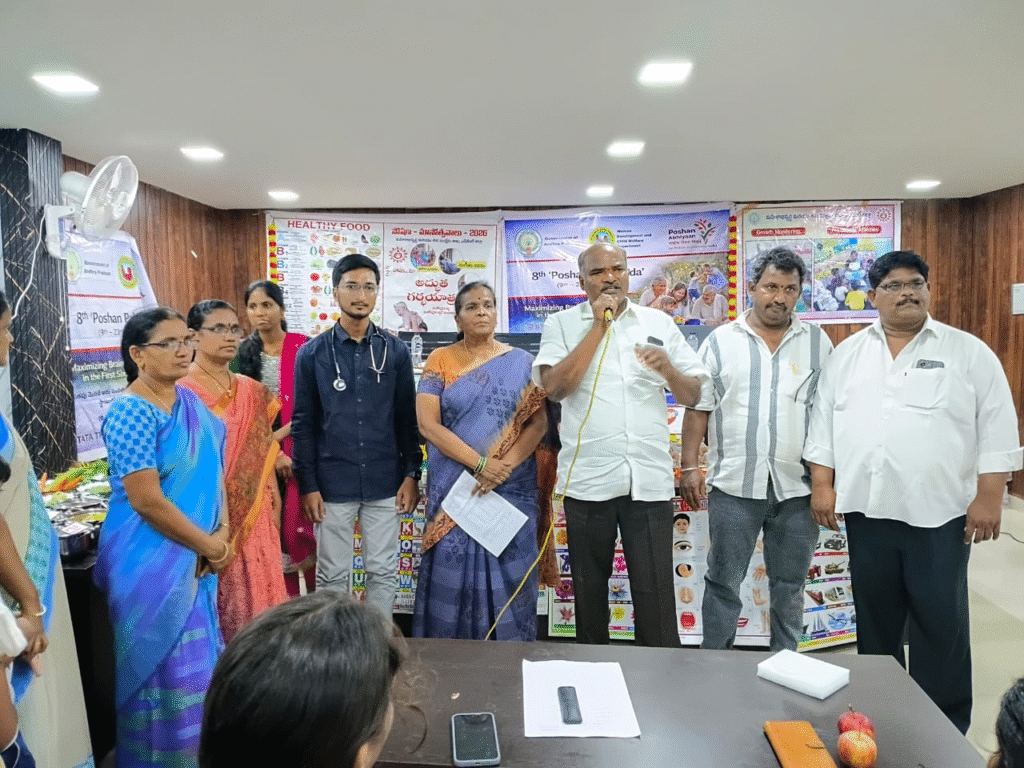 శారీరక, మానసిక ఆరోగ్యానికి పౌష్టికాహారం అత్యంత ముఖ్యమన్నారు. సీడీపీవో పుష్పలత మాట్లాడుతూ పిల్లల మెదడు అభివృద్ధి రెండు సంవత్సరాల్లోపు 80 శాతం జరుగుతుందని, కనుక ఆ వయస్సులో సంరక్షణ, పోషణ అత్యవసరం అన్నారు. విజయ వాహిని చారిటబుల్ ఫౌండేషన్ ప్రోగ్రామ్ అసోసియేట్ సిహెచ్.దివ్యశ్రీ బ్యాలెన్స్ డ్ డైట్ గురించి, జంక్ ఫుడ్ వల్ల కలిగే అనర్థాలు వివరించారు.
