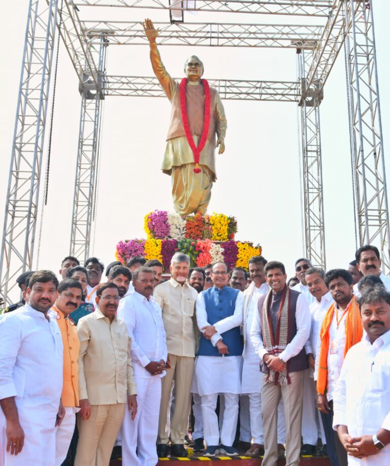 గుంటూరు  జిల్లా  తుళ్లూరు మండలం వెంకటపాలెంలో అటల్ బిహారీ వాజ్ పేయి (Atal Bihari Vajpayee)  జయంతి (Birth anniversary) సందర్భంగా 15 అడుగుల కాంస్య విగ్రహాన్ని  (15 Ft Bronze Statue)  గురువారం ఏపీ సీఎం చంద్రబాబు నాయుడు (Unveild) ఆవిష్కరించారు.