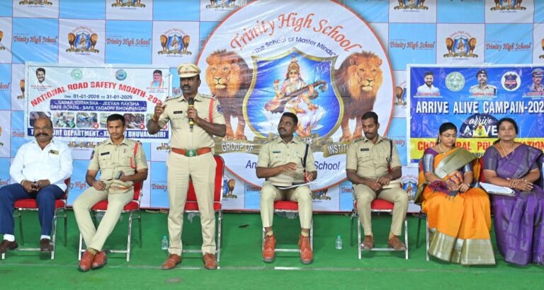 ఈ సందర్భంగా ఇన్స్పెక్టర్ మన్మధ కుమార్ మాట్లాడుతూ… డ్రైవింగ్ లైసెన్స్, రోడ్ సేఫ్టీ, హెల్మెట్, సీట్ బెల్ట్, డ్రంక్ అండ్ డ్రైవ్ ల పై విద్యార్థులకు అవగాహన కల్పించారు. రోడ్డు సేఫ్టీ నిబంధనలు పాటిస్తామని విద్యార్థులచే ప్రతిజ్ఞ చేయించారు. ఈ కార్యక్రమంలో గాంధీ గ్లోబల్ ఫ్యామిలీ చౌటుప్పల్ మండల అధ్యక్షురాలు వెన్ రెడ్డి సంధ్యా రాజు, ఎస్సైలు అజయ్ భార్గవ్, ఏఎంవిఐ లు హర్షవర్ధన్ రెడ్డి, ప్రణీత్ రెడ్డి, పాఠశాల డైరెక్టర్, ప్రిన్సిపాల్ ఉజ్జిని మంజుల, పాఠశాల చైర్మన్ కృష్ణారావు, ఉపాధ్యాయులు, 500 మందికి పైగా విద్యార్థులు, పోలీస్ సిబ్బంది పాల్గొన్నారు.