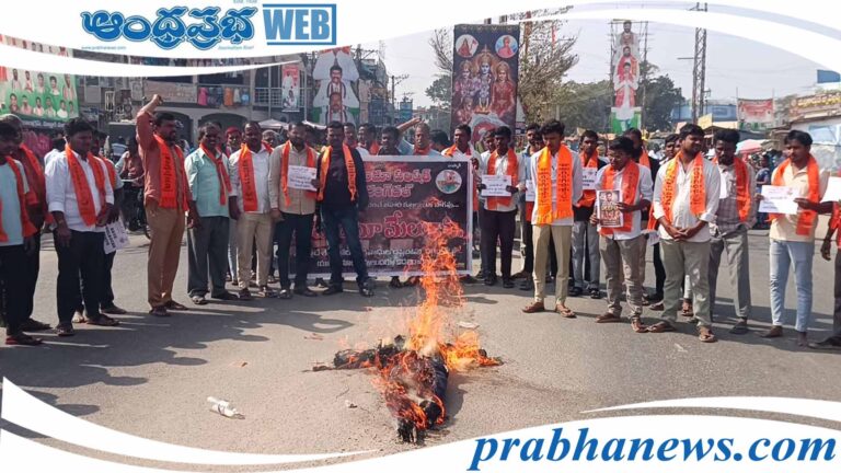 Bajrang Dal | మక్తల్, ఆంధ్రప్రభ : విశ్వహిందూ పరిషత్ బజరంగ్ దళ్(Bajrang Dal) తెలంగాణ రాష్ట్ర పిలుపు మేరకు బంగ్లాదేశ్ లో దీపు చంద్రపై జరిగిన సంఘటనను నిరసిస్తూ నారాయణపేట జిల్లా మక్తల్ పట్టణంలో వీహెచ్ పీ, బజరంగ్ దళ్ ఆధ్వర్యంలో బంగ్లాదేశ్ దిష్టిబొమ్మను దహనం చేశారు.