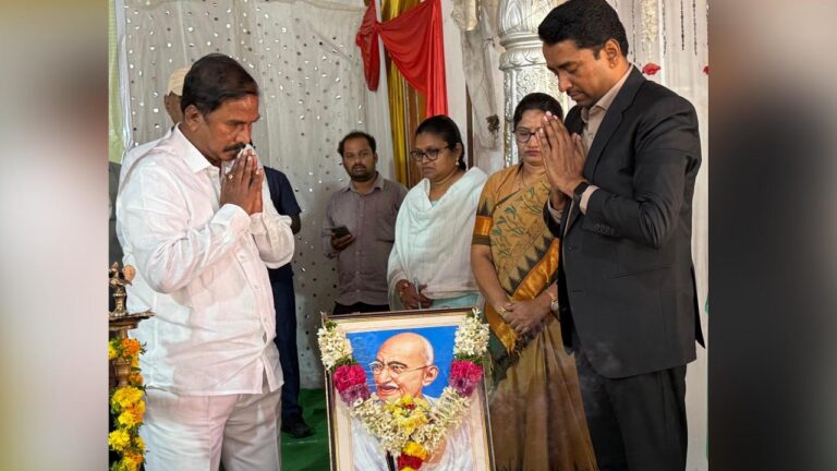 జాతిపిత మహాత్మా గాంధీ 78వ వర్ధంతి సందర్భంగా శుక్రవారం పెనుగంచిపోలులో జరిగిన సంపూర్ణత అభియాన్ కార్యక్రమంలో జిల్లా కలెక్టర్ డా. జి. లక్ష్మీశ, స్థానిక శాసనసభ్యులు శ్రీరాం రాజగోపాల్ (తాతయ్య) అధికారులతో కలిసి పూజ్య బాపూజీ చిత్రపటానికి పూల మాలలు వేసి ఘన నివాళులు అర్పించారు.