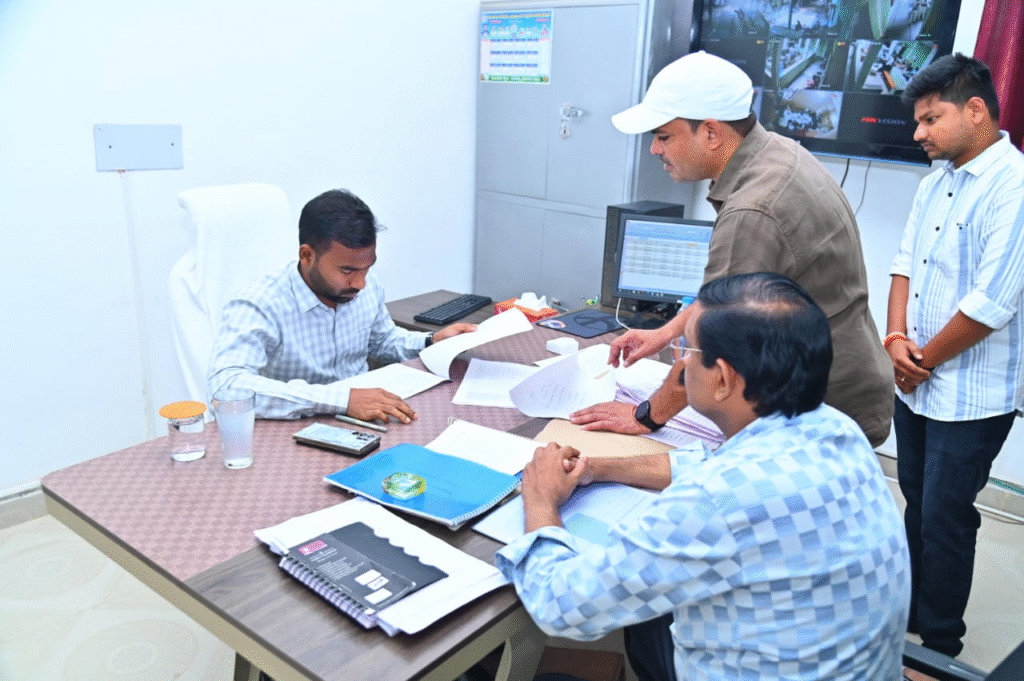 ధర్మపురి(ఆంధ్రప్రభ) : జగిత్యాల జిల్లా ధర్మపురి మండలం తహసీల్దార్ కార్యాలయాన్ని కలెక్టర్ బి.సత్యప్రసాద్ శుక్రవారం ఆకస్మికంగా తనిఖీ చేశారు. తెలంగాణ ప్రభుత్వం నూతనంగా ప్రవేశపెట్టిన భూ భారతి రెవెన్యూ సదస్సులో వచ్చిన దరఖాస్తులను క్షుణ్ణంగా పరిశీలించి పరిష్కరించాలని అధికారులకు సూచించారు. మీ సేవ సర్టిఫికెట్లను పెండింగ్ లేకుండా జారీ చేయాలని ఆదేశించారు. ఈ సందర్భంగా రికార్డులను కలెక్టర్ పరిశీలించారు. లక్ష్మీనరసింహ స్వామి దేవస్థానం పునఃనిర్మాణం పనులకు సంబంధించిన భూసేకరణ పనులు వేగవంతం చేయాలని ఆదేశించారు. కలెక్టర్ వెంట జగిత్యాల రెవెన్యూ డివిజనల్ అధికారి మధుసూదన్, ధర్మపురి మండల తహసీల్దార్ ఎరుకొండ శ్రీనివాస్, రెవెన్యూ సిబ్బంది పాల్గొన్నారు.