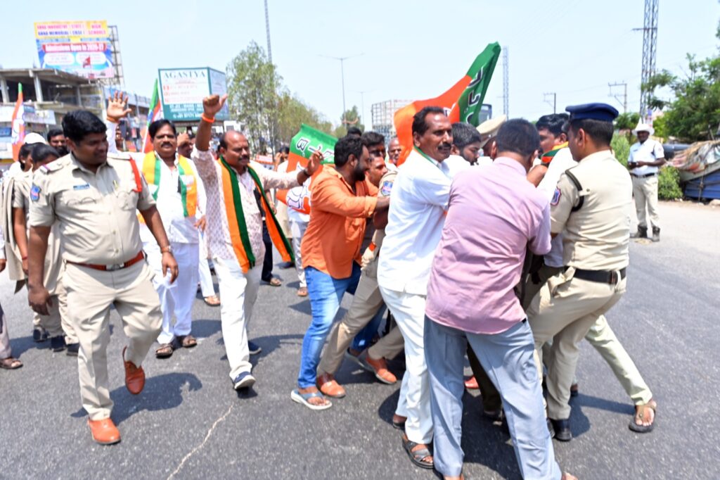 ఈ సందర్భంగా పలువురు నాయకులు మాట్లాడుతూ.. మహిళా సాధికారతకు అడ్డంకిగా నిలుస్తున్న కాంగ్రెస్ పార్టీ వైఖరిని తీవ్రంగా ఖండించారు. మహిళా రిజర్వేషన్ బిల్లు పై కాంగ్రెస్ పార్టీ ద్వంద వైఖరిని ప్రదర్షిస్తూ, మహిళలకు న్యాయం చేయకుండా అడ్డుకుంటుందని, మహిళలకు సమాన హక్కులు కల్పించడలో కాంగ్రెస్ కు నిజమైన సంకల్పం ఎప్పుడు లేదని ఈ సంఘటన ద్వారా నిజమైందన్నారు. ఈ సందర్భంగా బీజేపీ నాయకులు కాంగ్రెస్ పార్టీ దిష్టిబొమ్మను దగ్ధం చేయడానికి ప్రయత్నించగా పోలీసులు అడ్డుకొని బీజేపీ నాయకులను అదుపులోకి తీసుకున్నారు.