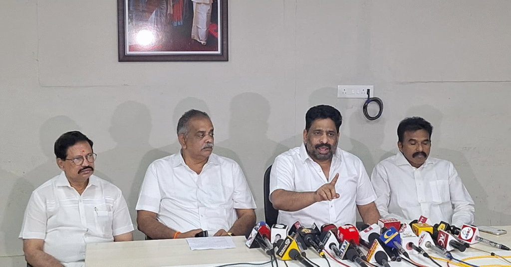 ఎన్టీఆర్ బ్యూరో, ఆంధ్రప్రభ : నకిలీ మద్యంతో రాష్ట్ర ప్రజల ప్రాణాలతో వైసీపీ చెలగాటమాడుతోందని తెలుగుదేశం పార్టీ రాష్ట్ర ప్రధాన కార్యదర్శి మాజీ ఎమ్మెల్సీ బుద్దా వెంకన్న(Buddha Venkanna) విమర్శించారు. తప్పు చేయడం వైసీపీ డిఎన్ఏలోనే ఉందన్న ఆయన నకిలీ మద్యం వైసీపీ ప్రభుత్వంలోనే పురుడు పోసుకున్నట్లు గుర్తు చేశారు. ఈ వ్యవహారంలో సూత్రధారులు పాత్రధారులు జైలుకు వెళ్లడం ఖాయమన్న ఆయన జోగి రమేష్ అరెస్టు వ్యవహారంలో బీసీ కార్డుతో బయట పడే ప్రయత్నం చేస్తూ కుల రాజకీయాలకు వైసీపీ(YCP) తెరదీసిందని ఆరోపించారు. త్వరలోనే నకిలీ మద్యం కారణంగా మరణించిన బాధ్యత కుటుంబాలతో తాడేపల్లి జగన్ ప్యాలెస్ ముందు ధర్నా చేయనున్నట్లు ప్రకటించారు.