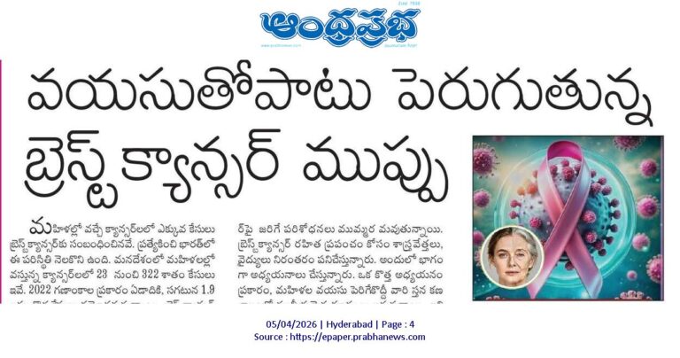 వయసుతోపాటు పెరుగుతున్న బ్రెస్ట్‌క్యాన్సర్‌ ముప్పు