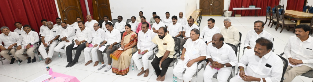 ఎర్రవెల్లి , ఆంధ్రప్రభ : రాబోయే ఎన్నికలలో ఎక్కువ మందికి స్థానం కల్పిస్తామని బీఆర్ఎస్ అధినేత కేసీఆర్ భరోసా ఇచ్చారు. ఆయారాం గయారాం నేతలు మనకొద్దని తేల్చి చెప్పారు.. పార్టీ వీడిన వారిని తిరిగి చేర్చుకునే ప్రసక్తి లేదన్నారు.. బీఆర్ఎస్ పార్టీ ఆవిర్భావ, రజతోత్సవ మహాసభ నేపథ్యంలో ఉమ్మడి ఖమ్మం, మహబూబ్ నగర్, నల్గొండ జిల్లాల ముఖ్య నేతలతో పార్టీ అధినేత కే. చంద్రశేఖర్ రావు అధ్యక్షతన శనివారం ఎర్రవెల్లి నివాసంలో సన్నాహక సమావేశం నిర్వహించారు.