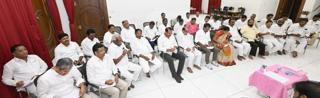 కాగా, ఈ సమావేశంలో వరంగల్లో నిర్వహించే పార్టీ రజతోత్సవ మహాసభ గురించి ఈ జిల్లాలల నేతలకు కేసీఆర్ దిశానిర్దేశం చేశారు. పార్టీ రజతోత్సవ సభ నేపథ్యంలో రోజుకు రెండు ఉమ్మడి జిల్లాల నేతలతో కేసీఆర్ సన్నాహక సమావేశాలు కొనసాగిస్తున్న సంగతి తెలిసిందే. వరుస సమావేశాల్లో కేసీఆర్ పార్టీ నేతలు, కార్యకర్తలకు కీలక సూచనలు చేస్తున్నారు. ఉద్యమ పంథాను గుర్తు చేస్తున్న ఆయన కాంగ్రెస్ పార్టీ వైఫల్యా లపై ప్రజల్లోకి వెళ్లేలా దిశానిర్దేశం చేస్తూ వరం గల్ సభ విజయవంతానికి కార్యోన్ముఖులను చేస్తున్నారు. బీఆర్ఎస్ నేతలు అనునిత్యం ప్రజాక్షేత్రంలో అందుబాటు-లో ఉండాలని ఉప దేశమిచ్చిన కేసీఆర్ అప్పుడే పార్టీపై సాను కూలత పెరుగు తుందని నేతలకు చెప్పారు. ఇక పార్టీ పిలుపునిచ్చిన కార్యక్రమా ల్లో పాల్గొని విజయవంతం చేసిన నేతలకు భవిష్యత్ ఉంటుందని అన్నారు.