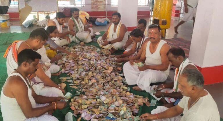 బెల్లంపల్లి, ఆంధ్రప్రభ : మహా శివరాత్రి ఉత్సవాల సందర్భంగా ప్రసిద్ధ పుణ్యక్షేత్రమైన బెల్లంపల్లి కన్నాల శ్రీ బుగ్గ రాజేశ్వర స్వామి దేవాలయానికి వచ్చిన ఆదాయ వివరాలను కార్యనిర్వహణాధికారి ముక్త రవి వెల్లడించారు. శుక్రవారం హుండీ లెక్కింపు జరుగ్గా ఆయన వివరాలు తెలిపారు. ఈ ఏడాది జాతర ఆదాయం గత ఏడాది కంటే గణనీయంగా పెరిగి మొత్తం రూ. 12,63,278 కు చేరింది. గత ఏడాది వచ్చిన రూ. 11,39,369 ఆదాయంతో పోలిస్తే, ఈసారి రూ. 1,23,909 అదనంగా సమకూరిందని తెలిపారు.