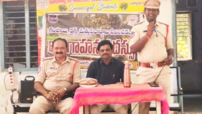 డ్రగ్స్, గంజాయి ఆల్కహాల్ వంటి మత్తు పదార్థాలు తమ పరిసరాలలో గుర్తించినట్లయితే వెంటనే 100కి కాల్(Call 100) గానీ లేదా 1908 కి గాని తెలియజేయాలని విద్యార్థులకు సూచించారు అదేవిధంగా విద్యార్థుల చేత డ్రగ్స్ రహిత సమాజ స్థాపనలో తమ వంతు పాత్ర పోషిస్తామని విద్యార్థుల చేత ప్రతిజ్ఞ చేయించారు. ఈ కార్యక్రమంలో ఏఎస్ఐ బలరాంరెడ్డి, కళాశాల ప్రిన్సిపల్ వెంకటేశ్వర్లు, అద్యాపకులు, పోలీస్ సిబ్బంది విద్యార్ధిని విద్యార్థులు పాల్గొన్నారు.