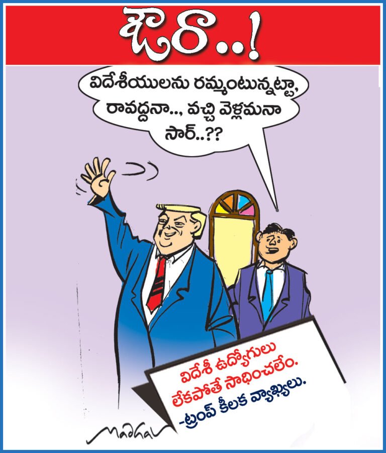 ఎవరైనా అగ్రరాజ్యంలో చదువుకుందామనో, ఉపాధి వెతుక్కుందామనో, స్థిరపడదామనో డాలర్ కలలు కంటారు గానీ, తమ మేధస్సును అమెరికన్లకు ధారపోసి, వచ్చిన దారినే ఇంటిదారి పట్టాలని అనుకుంటారా? అయినా, (Cartoon) అమెరికన్లకు ట్రైనింగ్ ఇచ్చి వెనుదిరగడం అంటే ఎంతకాలం? ఇలా రకరకాల అయోమయాల మధ్య, ట్రంపు వ్యాఖ్యలు కొంత శుభసూచకమే అని ఆశిద్దాం.
