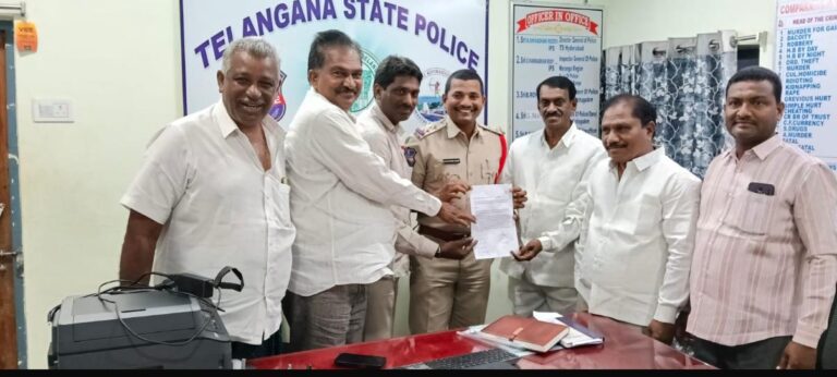 పోలీస్ స్టేషన్ లో ఫిర్యాదు చేస్తున్న కాంగ్రెస్ నాయకులు