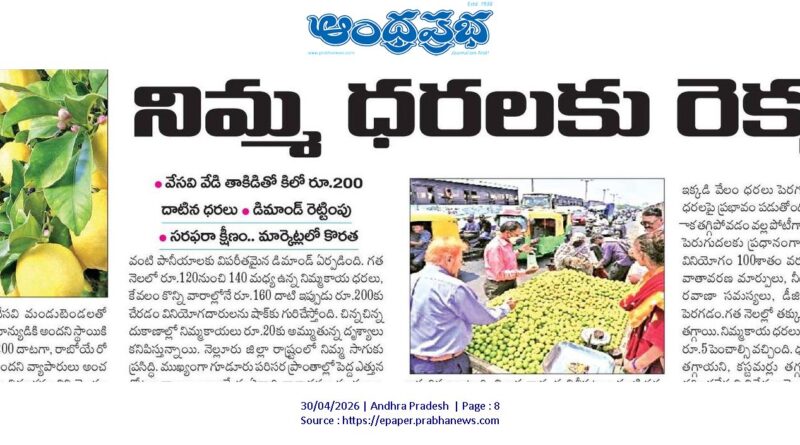 మార్కెట్లలో నిమ్మకాయల కొరత అమరావతి, ఆంధ్రప్రభ: వేసవి మండుటెండలతో రాష్ట్రంలో నిమ్మకాయ ధరలు