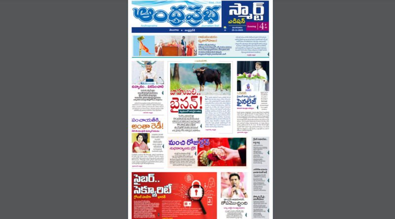 ఆంధ్రప్రభ స్మార్ట్ ఎడిషన్ 25-11-2025, 4.00PM👉 రామ మందిరపై కాషాయ జెండా👉 బైసన్..