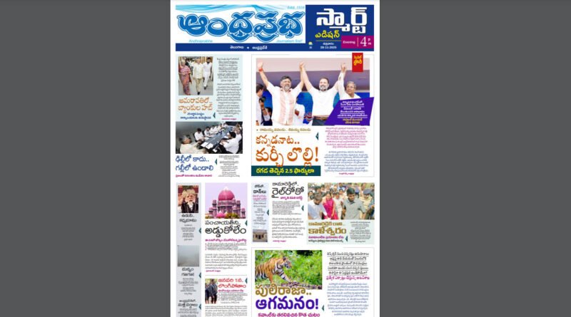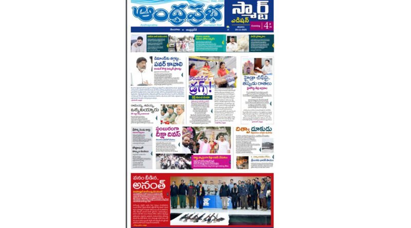 ఆంధ్రప్రభ స్మార్ట్ ఎడిషన్ 29-11-2025, 4.00PM👉 మేడారానికి జాతీయ హోదా లేదు👉 హైడ్రా