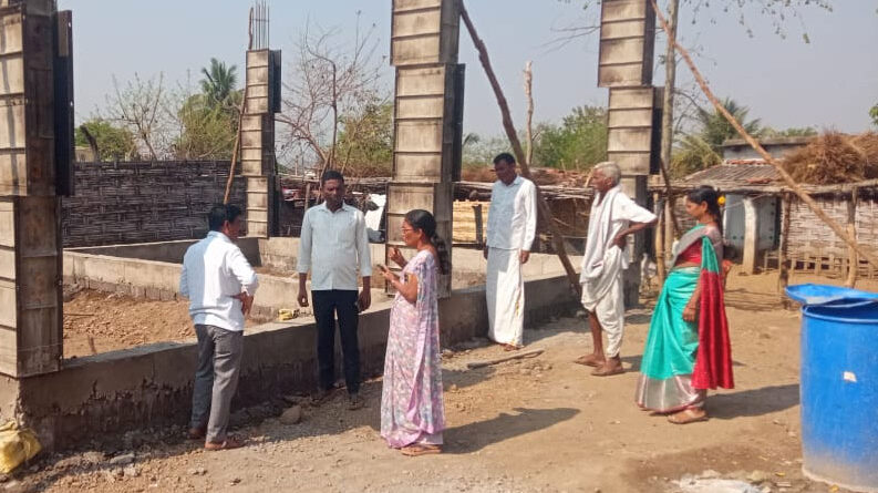 నాణ్యత పాటించాలి.. భవన నిర్మాణ పనులను పరిశీలిస్తున్న సర్పంచ్ సిర్పూర్ (యు), ఆంధ్రప్రభ