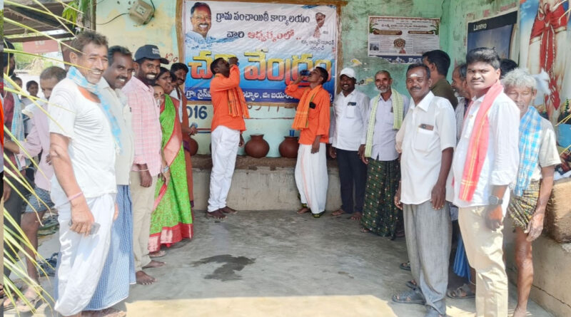 మునుగోడు, ఆంధ్రప్రభ : మండల కేంద్రంలోని అంబేద్కర్ చౌరస్తాలో గ్రామపంచాయతీ ఆధ్వర్యంలో చలివేంద్రం