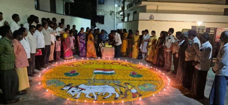 పెనుగంచిప్రోలు, ఆంధ్రప్రభ : తూర్పు బజారు గాంధీ సెంటర్ నందు తెలుగు మహిళలు అమరావతి మద్దతుగా పార్లమెంటులో బిల్లు ఆమోదం పొందడంతో ఈ రోజు తెలుగు మహిళలు గింజుపల్లి శ్రీదేవి పెద్ది సుజాత నల్లపునేని సుజాత కోడె క్రాంతి పాకాలపాటి అనసూయ కూచితేజ స్వయంగా జై అమరావతి అని రైతే రాజు అని.. ముగ్గులతో రాసి పూలతో అలంకరించి కొవ్వొత్తులు వెలిగించి సంబరాలు నిర్వహించారు. అనంతరం కేక్ కట్ చేసి అందరికీ స్వీట్ పంచారు.