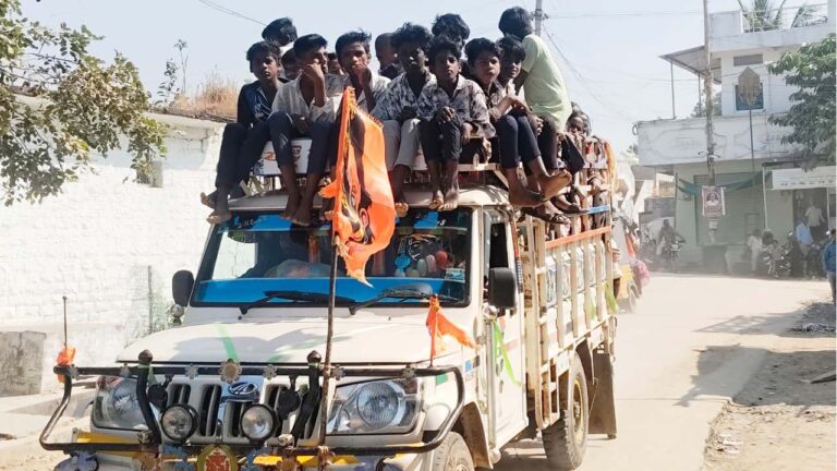 ప్ర‌స్తుతం ప‌త్తి పంట‌లో ప‌నులు జ‌రుగుతున్నాయి. ఈ రోజు సెల‌వు కావ‌డం(Vacationing)తో విద్యార్థులు కూడా పైస‌లు సంపాదించుకోవ‌డం కోసం కూలికి వెళుతున్నార‌ని స‌మ‌చారం. ఓవ‌ర్ లోడుతో వెళుతున్న వాహ‌నంలో విద్యార్థులు కూడా ఉన్నారు. నిబంధ‌న‌లు ప్ర‌కారం బాల కార్మికుల‌(Child Labour)ను పెట్టుకుంటే నేరం. కానీ త‌క్కువ కూలికి దొరుకుతున్నార‌న్న ఆశ‌తో కొంద‌రు రైతులు విద్యార్థులను కూలి ప‌నికి త‌ర‌లిస్తున్నార‌ని తెలిసింది. నిబంధ‌న‌లు ఉల్లంఘించి బాల‌కార్మికుల‌ను ప్రోత్స‌హిస్తున్న వారిపై చ‌ర్య‌లు తీసుకోవాల‌ని ప‌లువురు కోరుతున్నారు.
