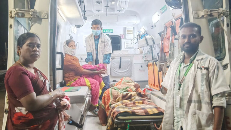 గురువారం తెల్లవారుజామున రక్తహీనత కారణంగా మెరుగైన చికిత్స కోసం ఆసుపత్రి సిబ్బంది ఆమెను రిమ్స్కు రిఫర్ చేశారు. అయితే అంబులెన్స్లో తీసుకెళ్తుండగా ముత్నూర్ గ్రామం సమీపంలో ఉదయం సుమారు 4 గంటల సమయంలో పురిటి నొప్పులు ఎక్కువ కావడంతో 108 అంబులెన్స్ సిబ్బంది ఈఎంఎటి సంతోష్, పైలట్ రాజేష్ సాయంతో సురక్షితంగా ప్రసవం నిర్వహించారు.