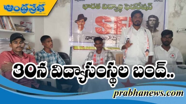 నారాయణపేట ప్రతినిధి, ఆంధ్రప్రభ : విద్యార్థుల సమస్యల పరిష్కరించాలని ఈ నెల 30న విద్యాసంస్థల బంద్ చేయనున్నట్లు ఎస్ ఎఫ్ ఐ(SFI) జిల్లా నాయకులు తెలిపారు. ఈ బంద్ను విజయవంతం చేయాలని కోరారు. ఈ రోజు నారాయణపేట జిల్లా ఎస్ఎఫ్ఐ కార్యాలయంలో ముఖ్య కార్యకర్తల సమావేశంలో రాష్ట్ర కమిటీ సభ్యుడు నరహరి(Narahari) మాట్లాడారు.