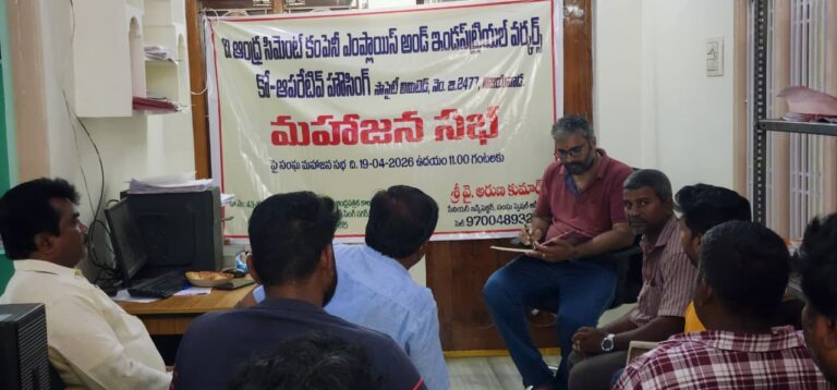 పాయకాపురం, ఆంధ్రప్రభ : అజిత్ సింగ్ నగర్ ఆంధ్ర ప్రభ కాలనీలో ది.ఆంధ్ర సిమెంట్ కంపెనీ ఎంప్లాయిస్ అండ్ ఇండస్ట్రియల్ వర్కర్స్ కో.ఆపరేటివ్ హౌసింగ్ సొసైటీ మహాజనసభ సమావేశం ఆదివారం ఘనంగా నిర్వహించారు. ఆంధ్రప్రభ కాలనీలోని సంఘ కార్యాలయంలో జరిగిన సభలో 100 మందికి పైగా సభ్యులు హాజరయ్యారు.